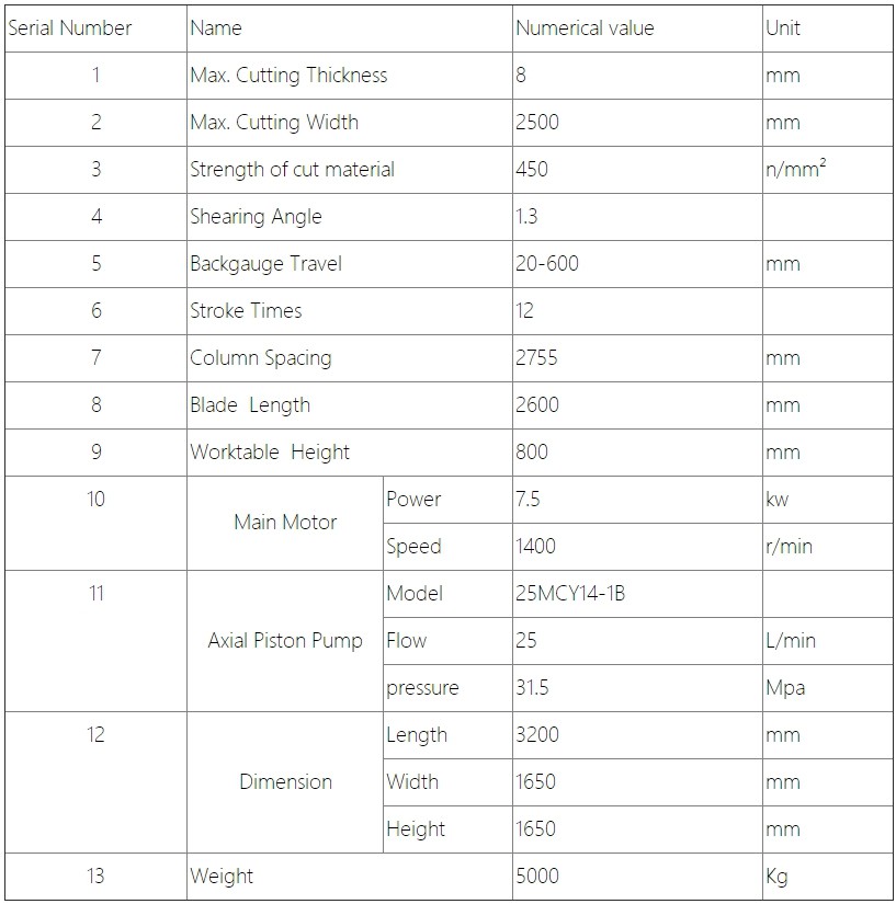 一、QC12Y-8×2500Hydraulic Shearing Machine